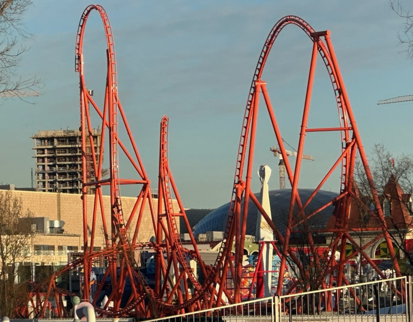 Ondertussen zijn we alweer bijna 2 maanden verder bij de bouw van de Vertical Launch Coaster in het nieuwe outdoor gebied van Dream Island in Moskau en is nu ook de Diveloop geplaatst.